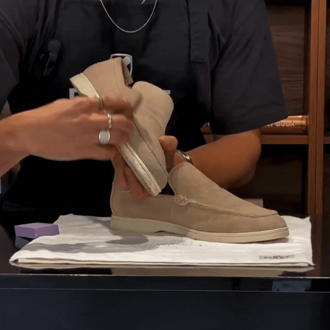 Verhindern Sie das Ausbluten von Wildleder- und Nubukschuhen durch Wasser und behandeln Sie sie mit diesem Radiergummi trocken.