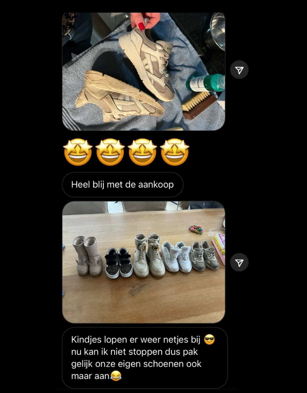 More than 60% of our customers buy both brushes because they have different (material) shoes at home.